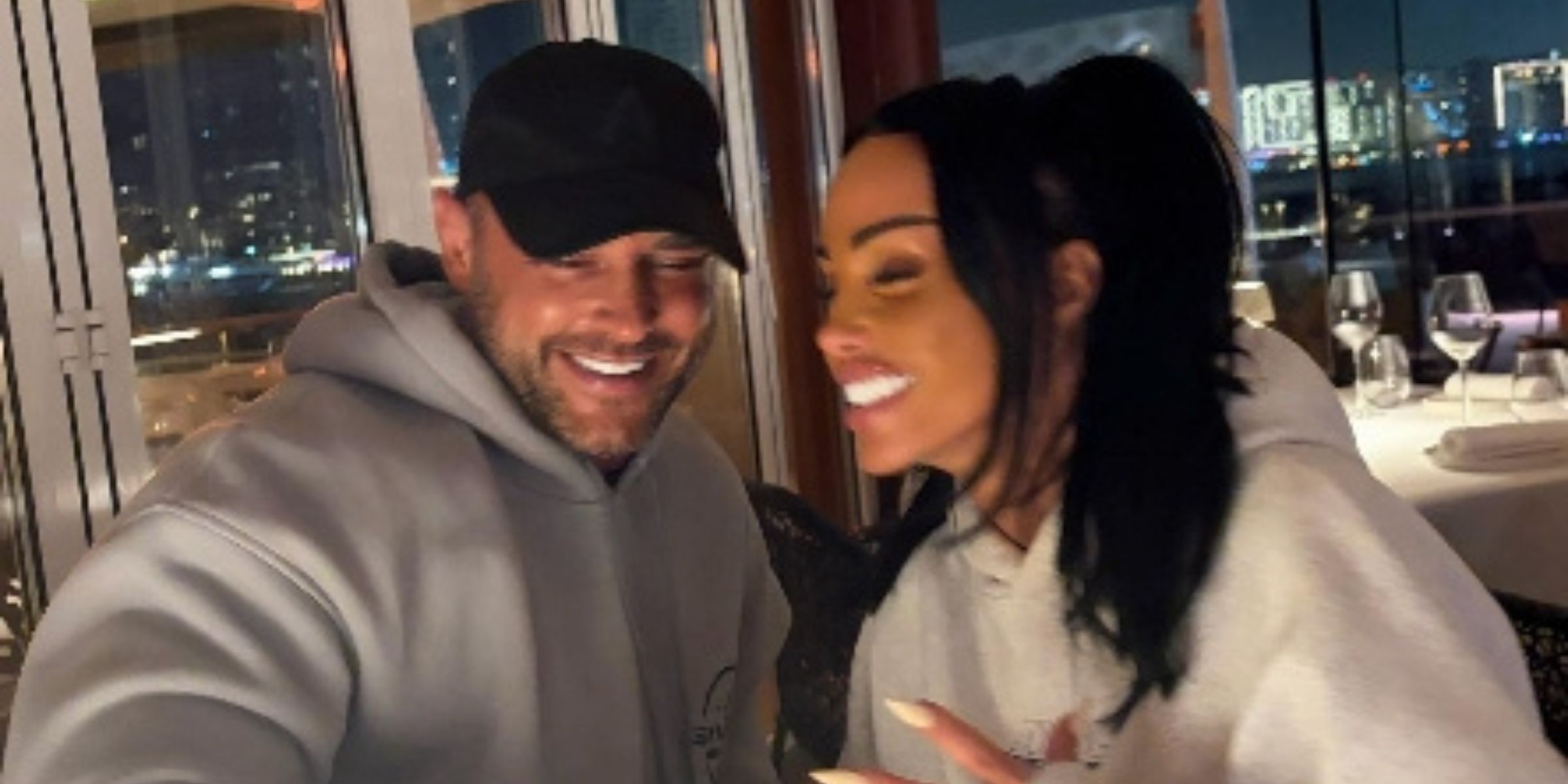 Lee Andrews and Katie Price pose together in Dubai shortly after announcing their surprise engagement, with the couple seen celebrating amid rose petals and candlelight. | Source: Instagram/wesleeeandrews