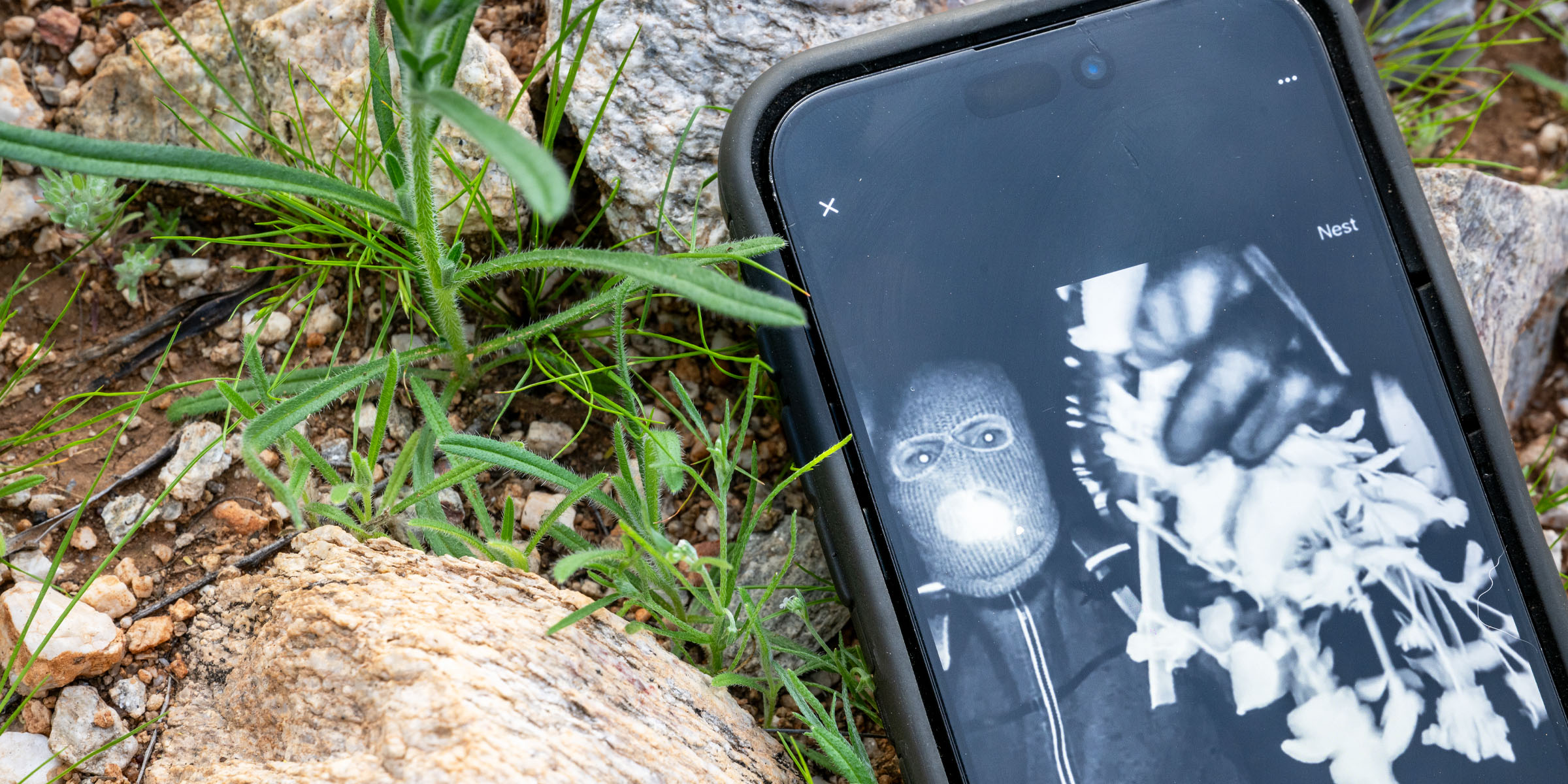 The footage also shows the masked individual grabbing foliage from the ground in an apparent attempt to cover the lens.
