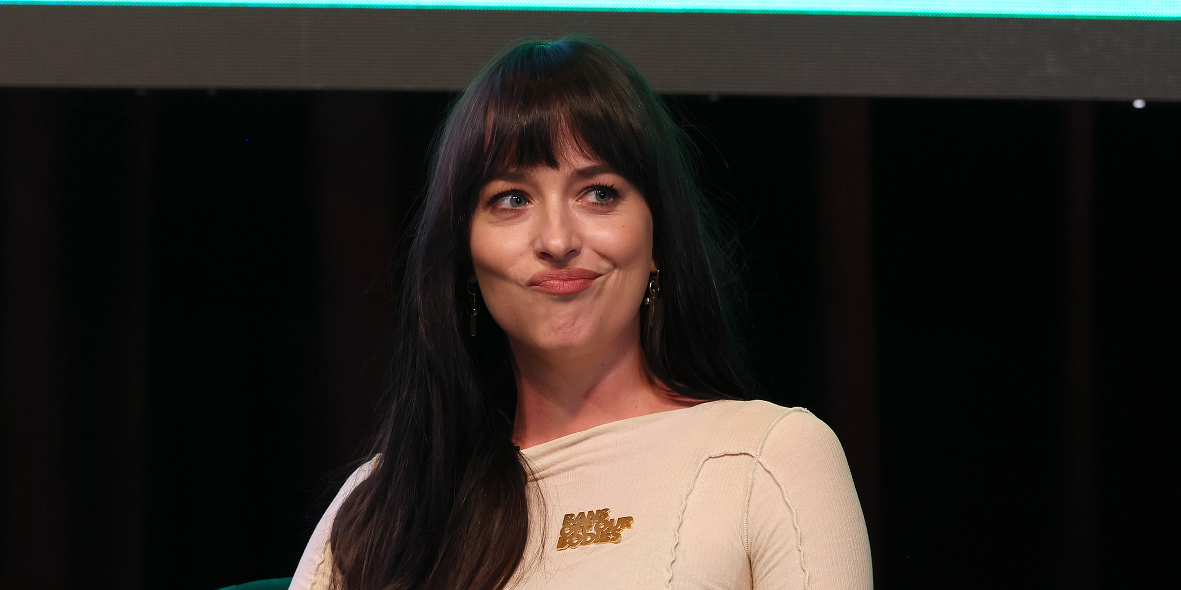 Dakota Johnson speaking onstage at the 21st Zurich Film Festival in Switzerland on September 26, 2025. | Source: Getty Images