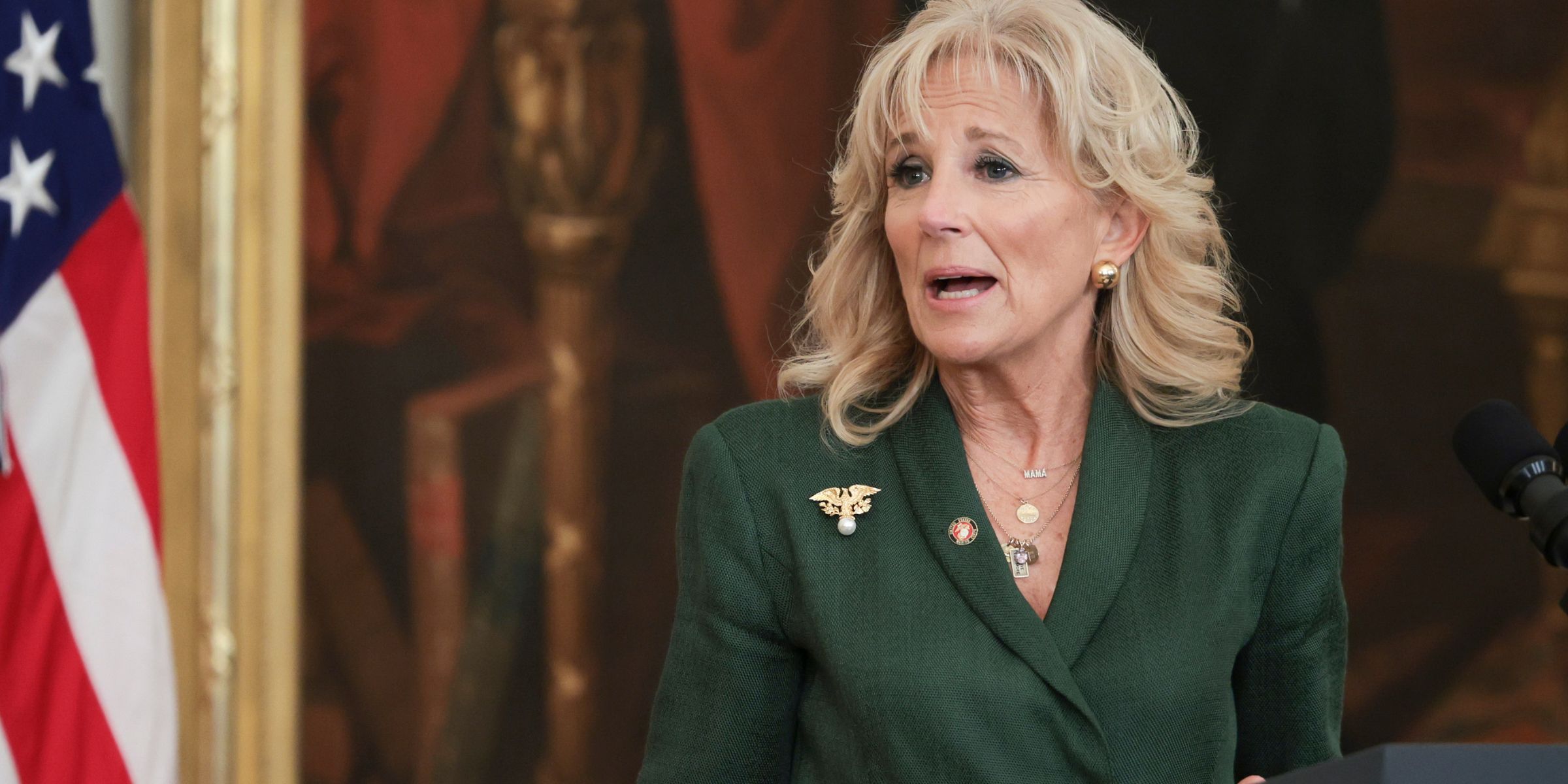Jill Biden speaks during a State Dinner media preview at the White House in Washington, D.C., on April 9, 2024 | Source: Getty Images